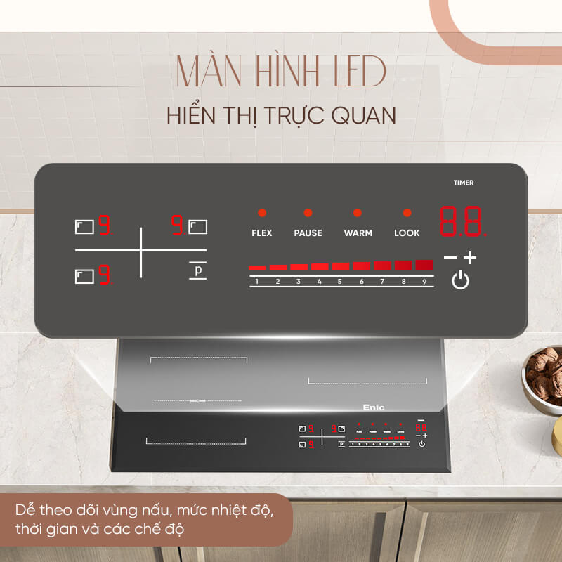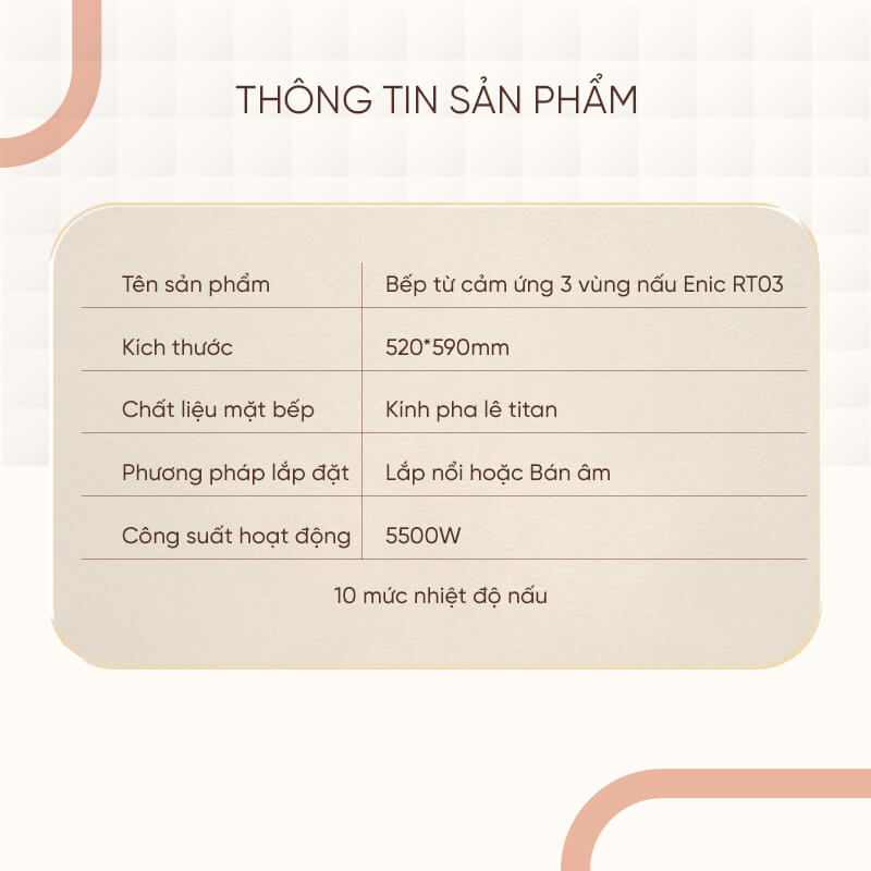 0 đánh giá Bếp từ cảm ứng 3 vùng nấu Enic RT03