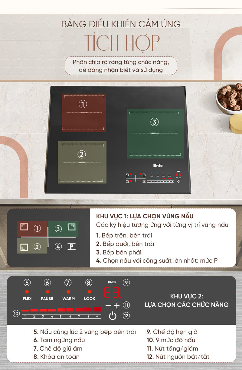 Bếp từ cảm ứng 3 vùng nấu Enic RT03