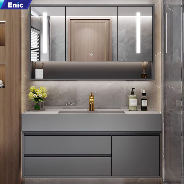 Bộ tủ gương lavabo phòng tắm cao cấp Enic T03 – Gỗ mới 60cm – 120cm