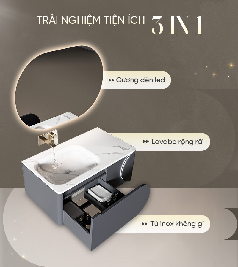 0 đánh giá Bộ tủ gương lavabo phòng tắm inox cao cấp Enic ET01