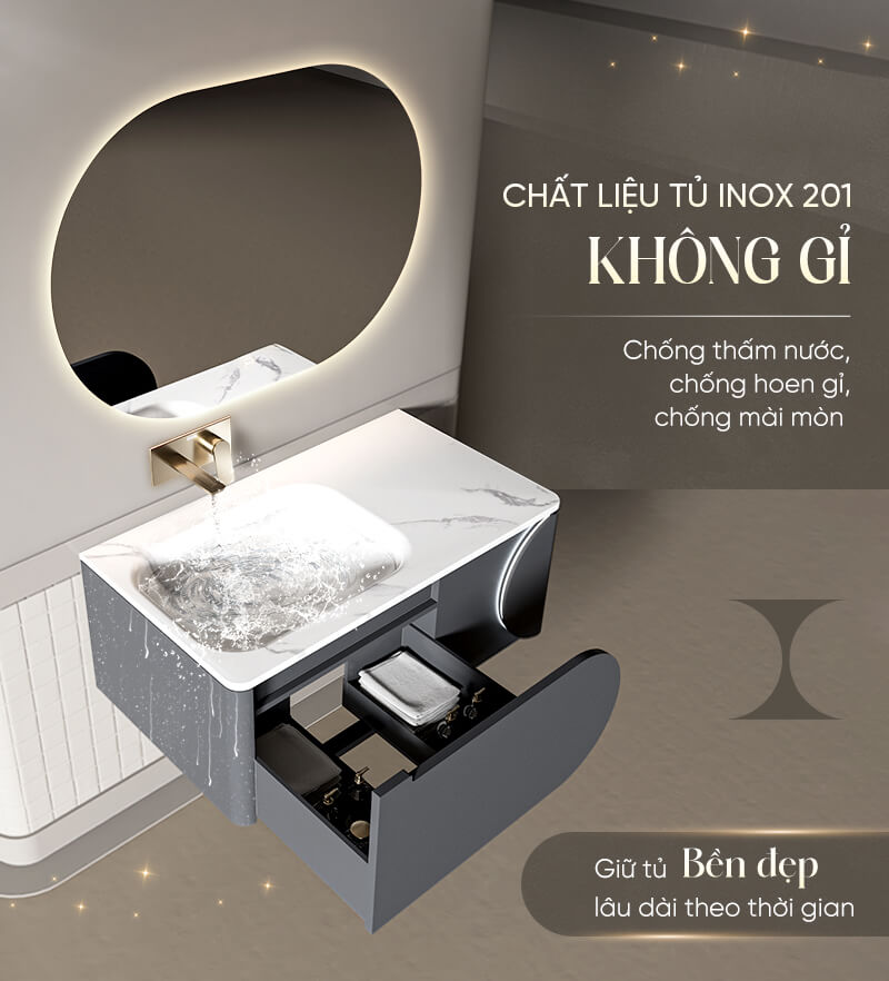 Bộ tủ gương lavabo phòng tắm inox cao cấp Enic ET01