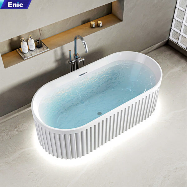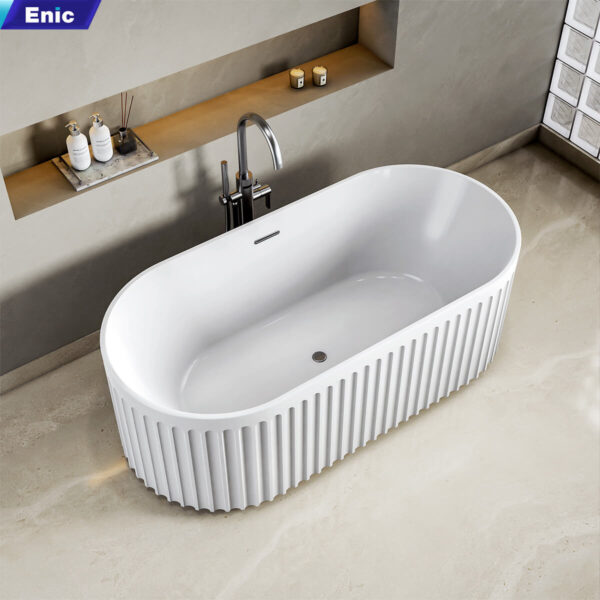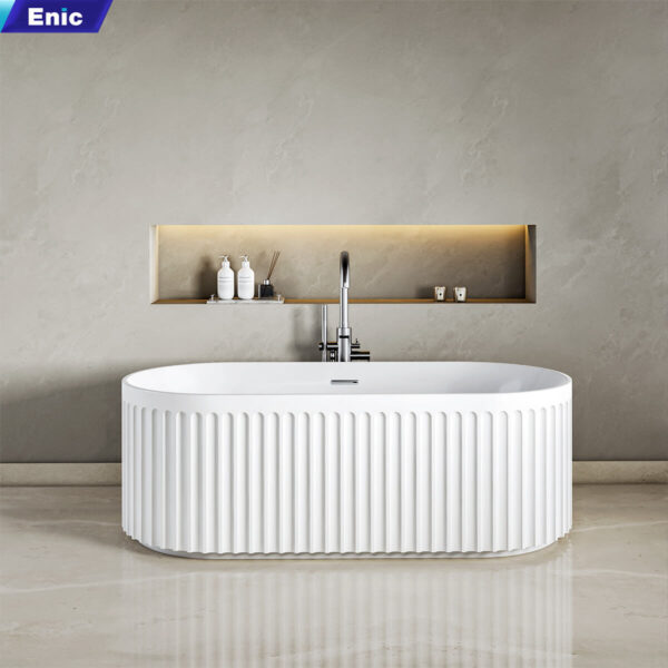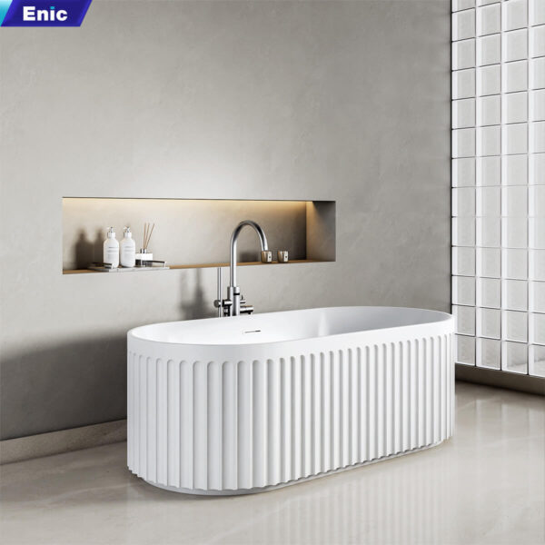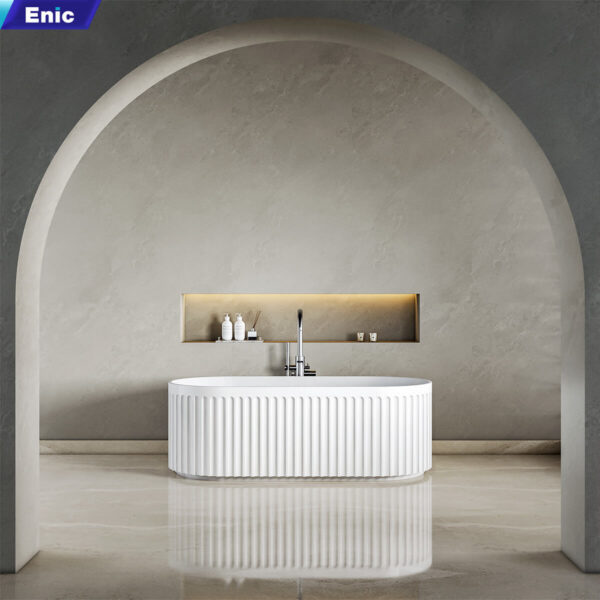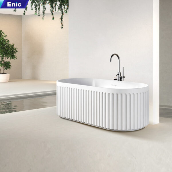 Bồn tắm Oval Enic B4 gây ấn tượng với thiết kế vân sóng độc đáo. Với kích thước lớn 1m7 và dung tích lên đến 300L, bồn tắm oval B4 mang đến không gian ngâm mình rộng rãi, lý tưởng cho những giờ phút thư giãn.