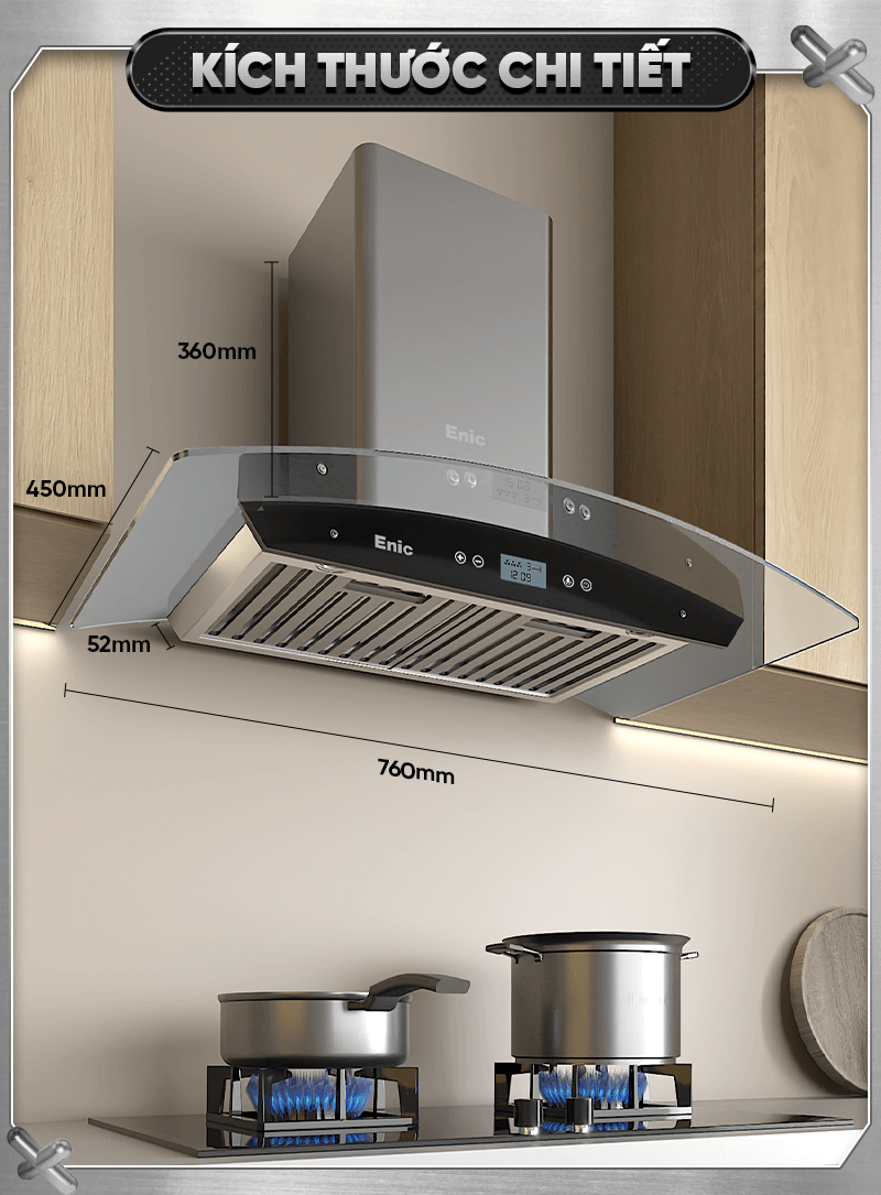 Máy Hút Mùi Cảm Biến Áp Tường Kính Cong C14