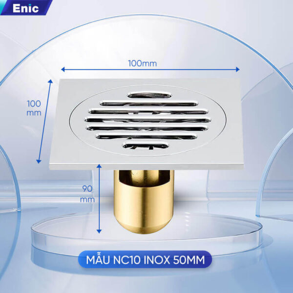 Phễu thoát sàn cao cấp đường kính chân thoát 50mm – Size 100x100mm
